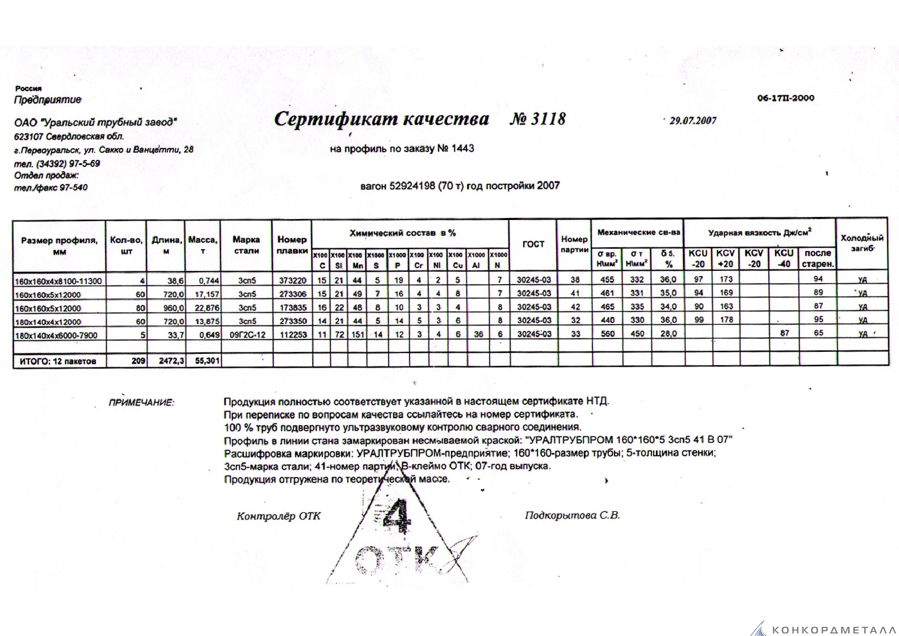 С каждой товарной позицией мы предоставляем все сертификаты и паспорта качества, а также товарно-транспортную накладную.