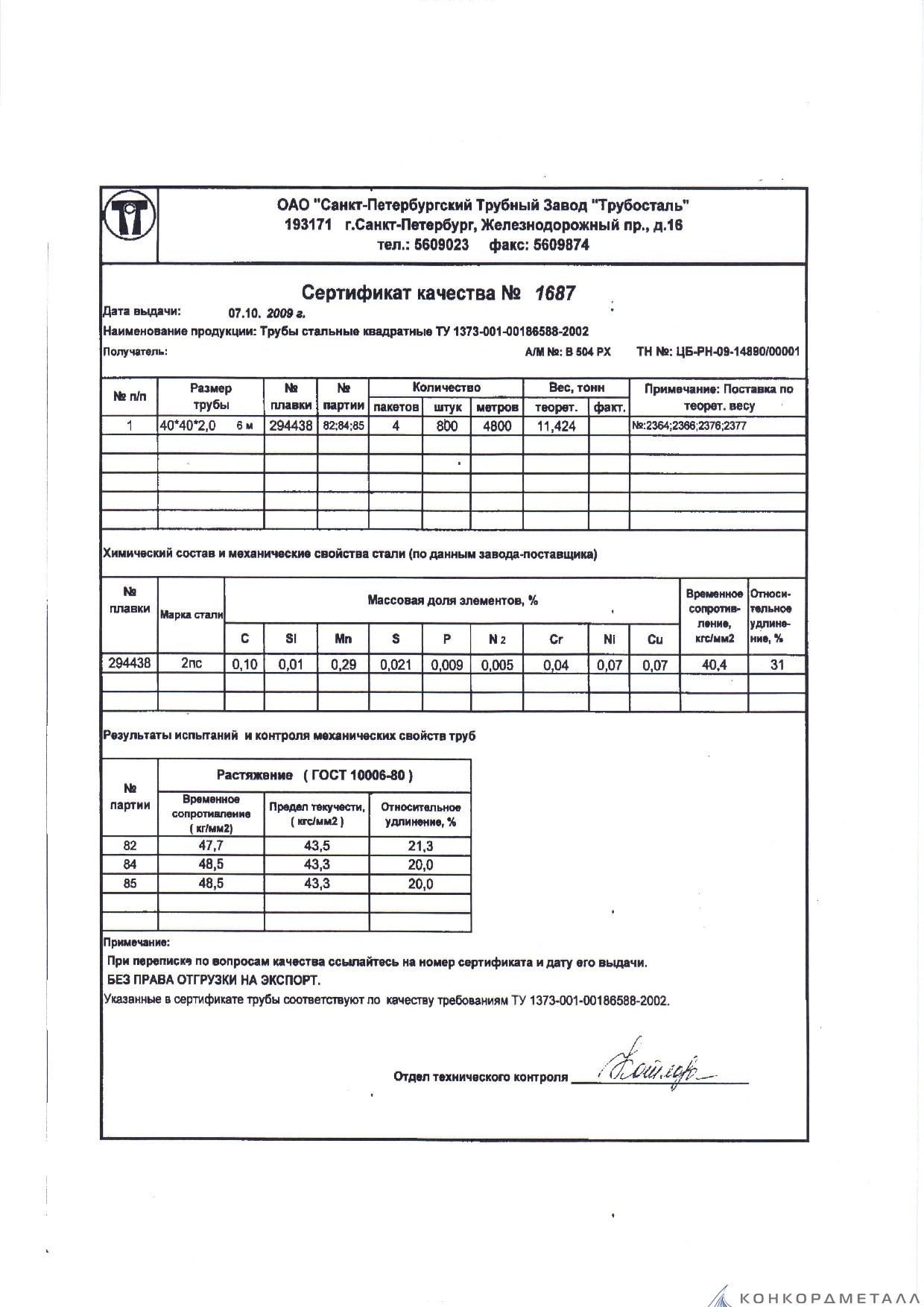 С каждой товарной позицией мы предоставляем все сертификаты и паспорта качества, а также товарно-транспортную накладную.