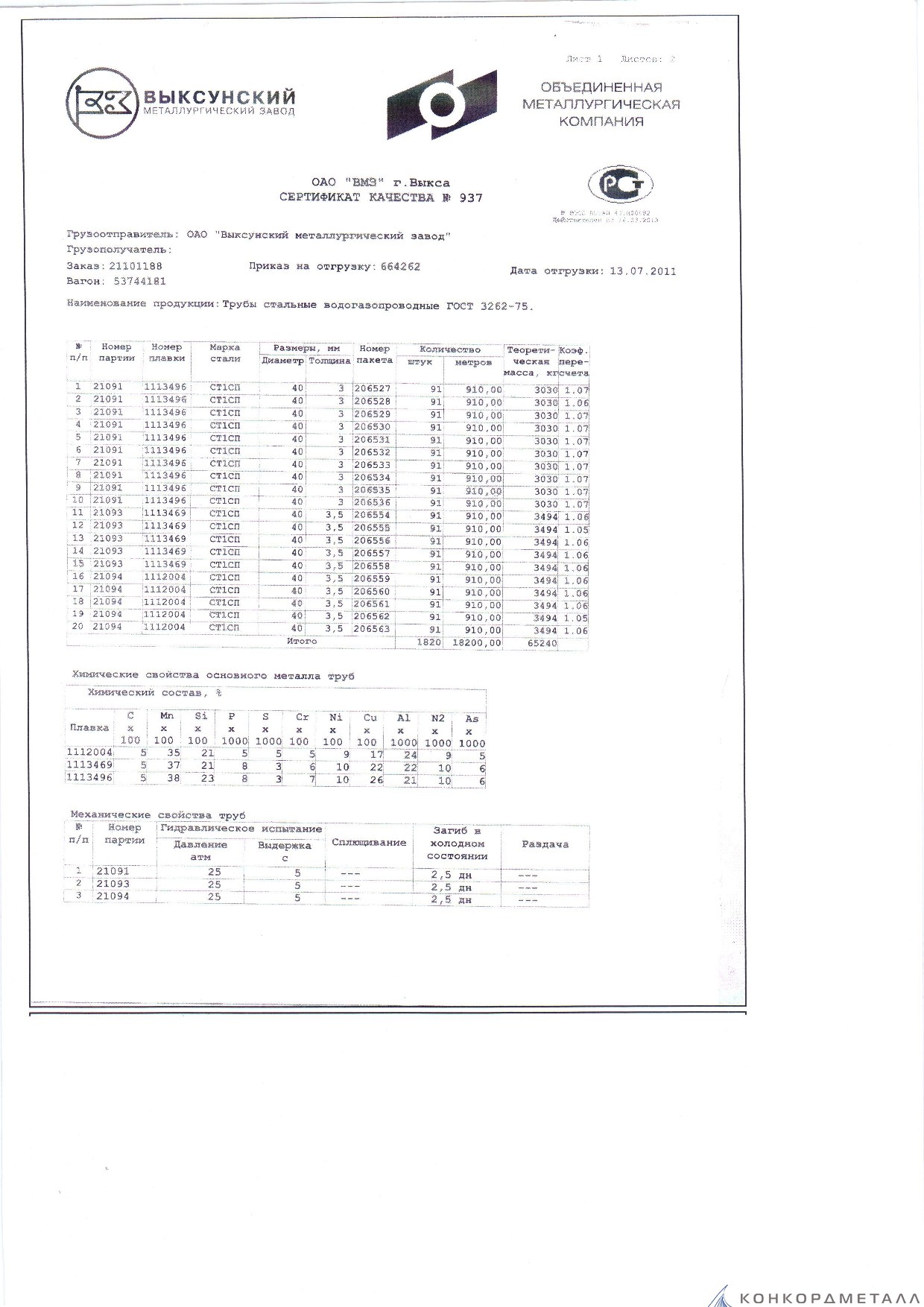 С каждой товарной позицией мы предоставляем все сертификаты и паспорта качества, а также товарно-транспортную накладную.